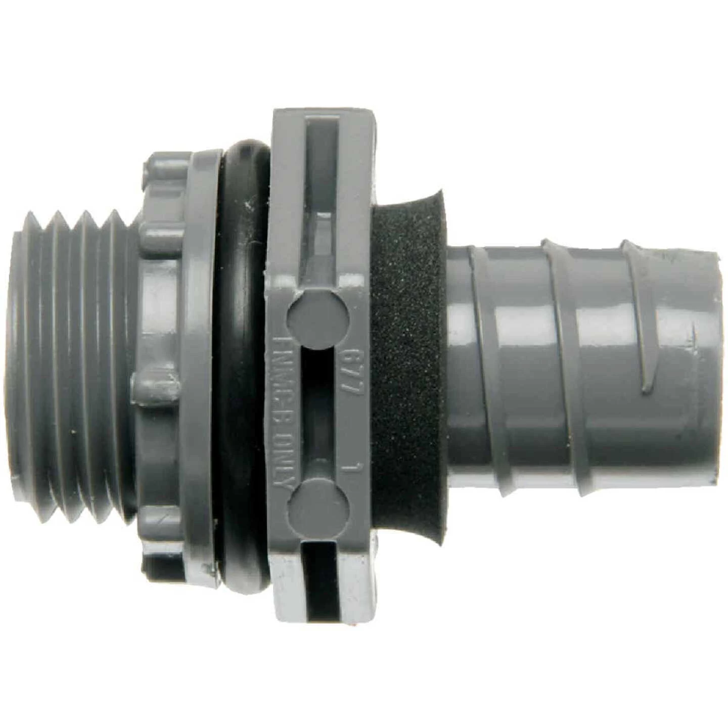 1-piece straight connector for use with non-metallic liquid tight flexible conduit systems.