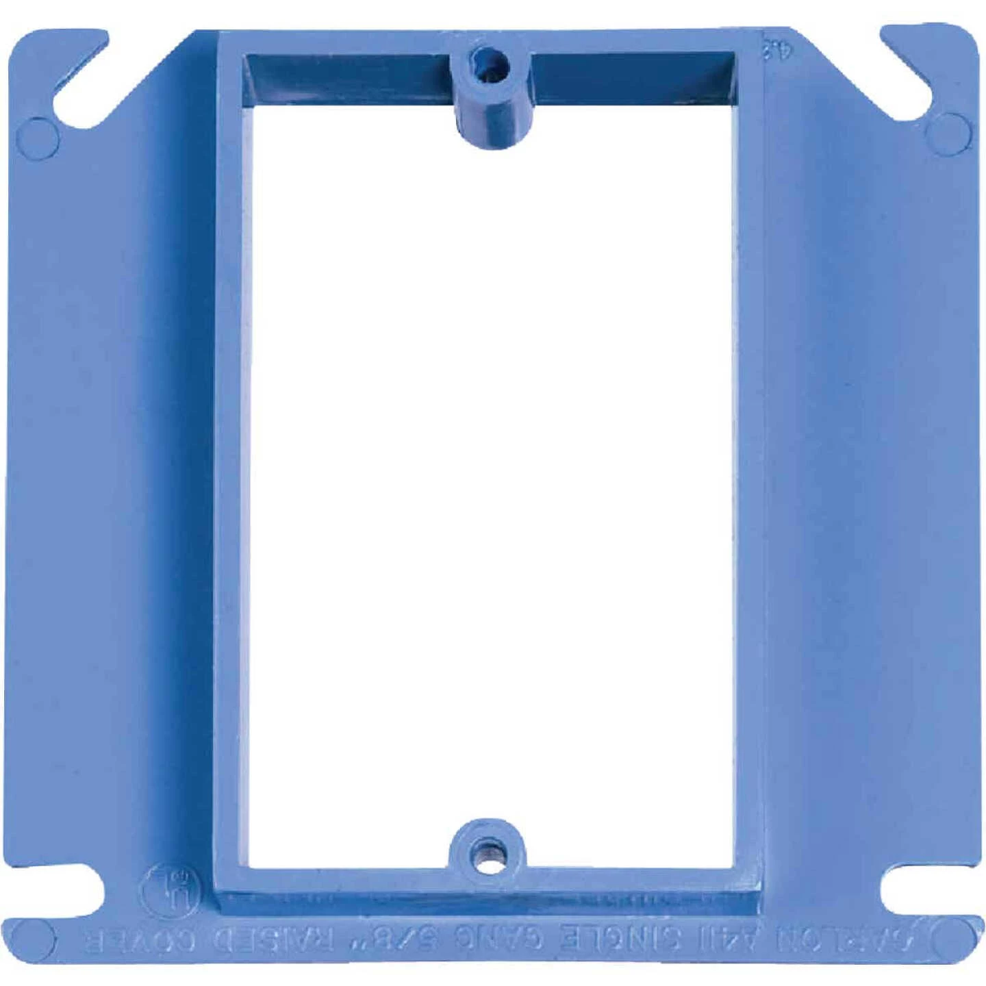 PVC, 4-inch square, single gang cover. 5/8-inch rise. UL (Underwriter’s Laboratories) listed.