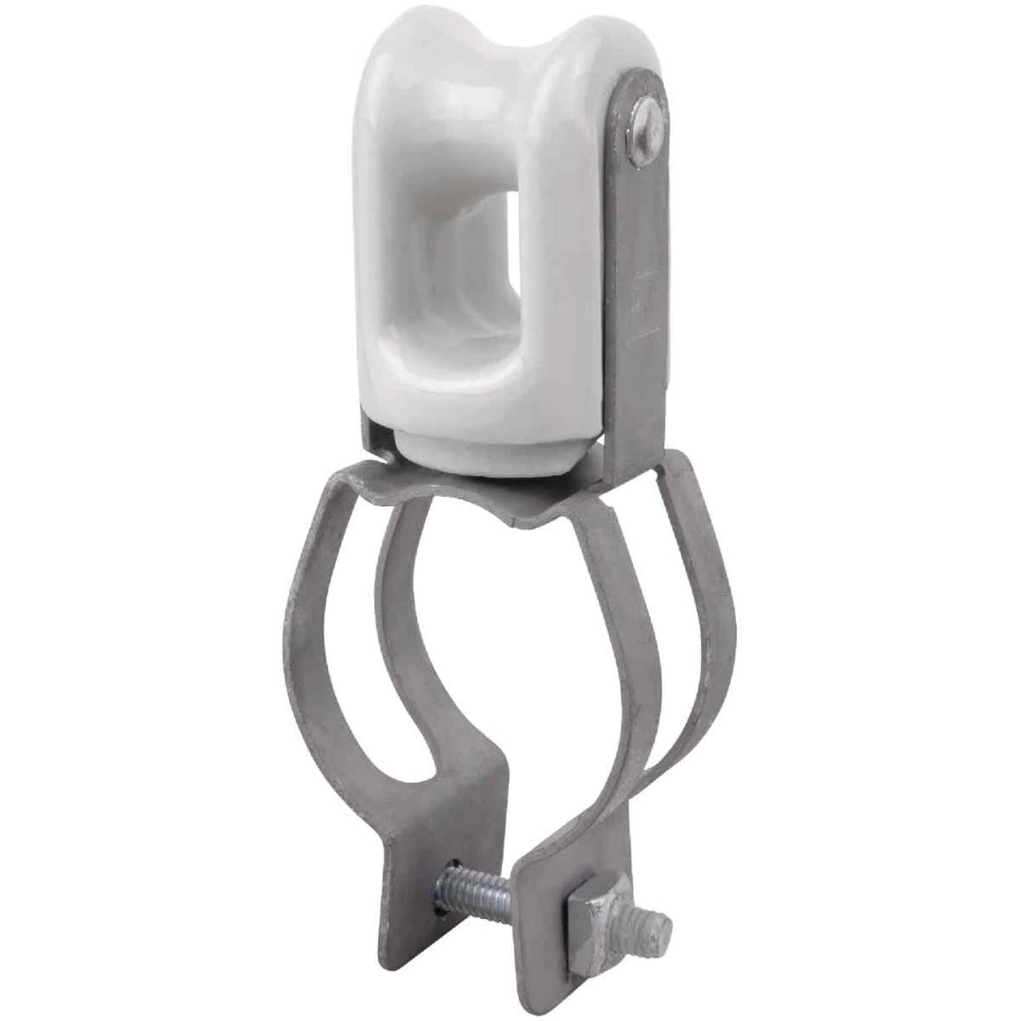 Pipe mounting wire holder. Designed especially for service entrance masts. May be used in all applications requiring attachment to pipe.